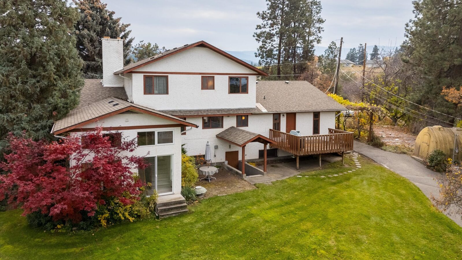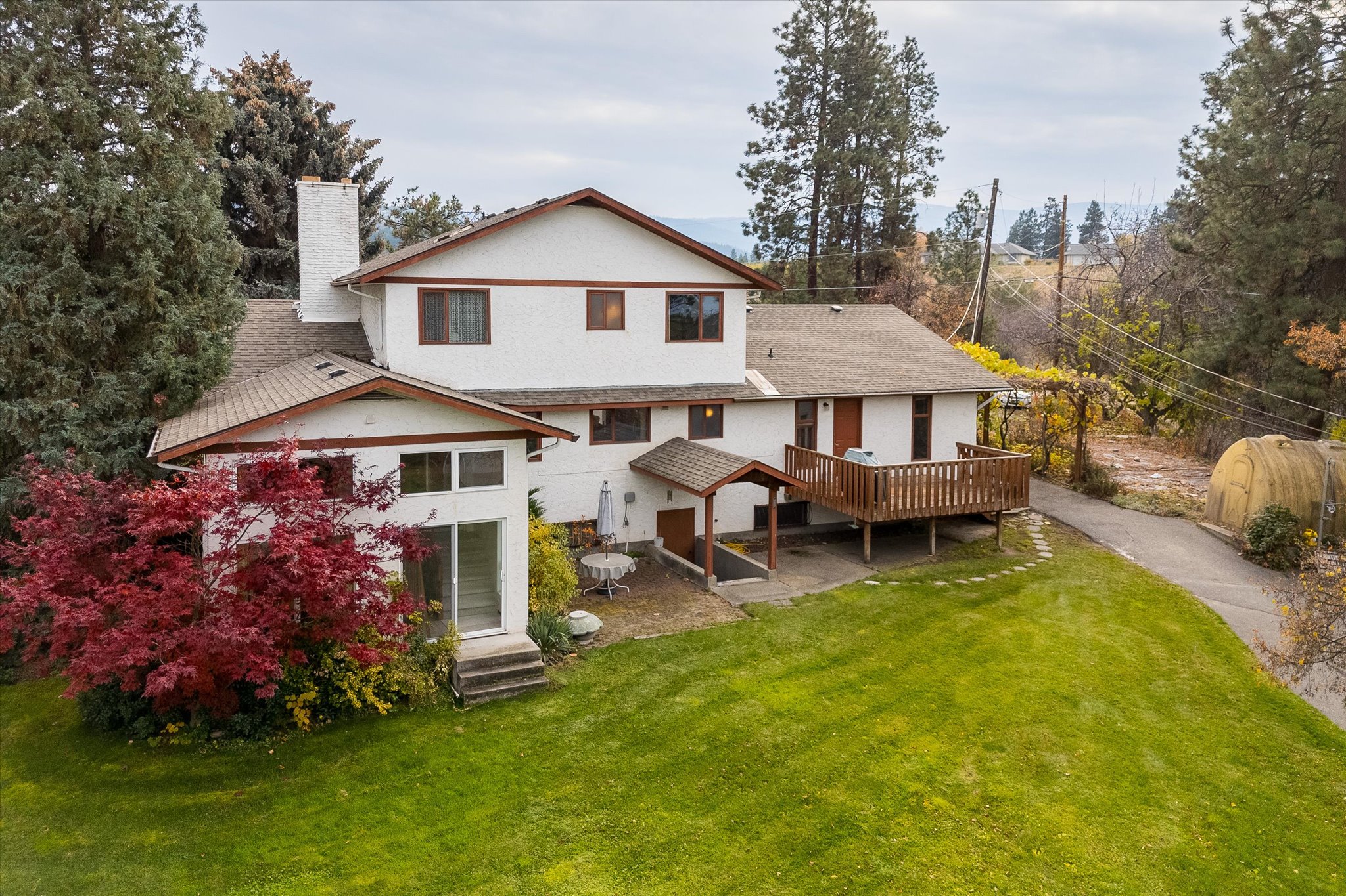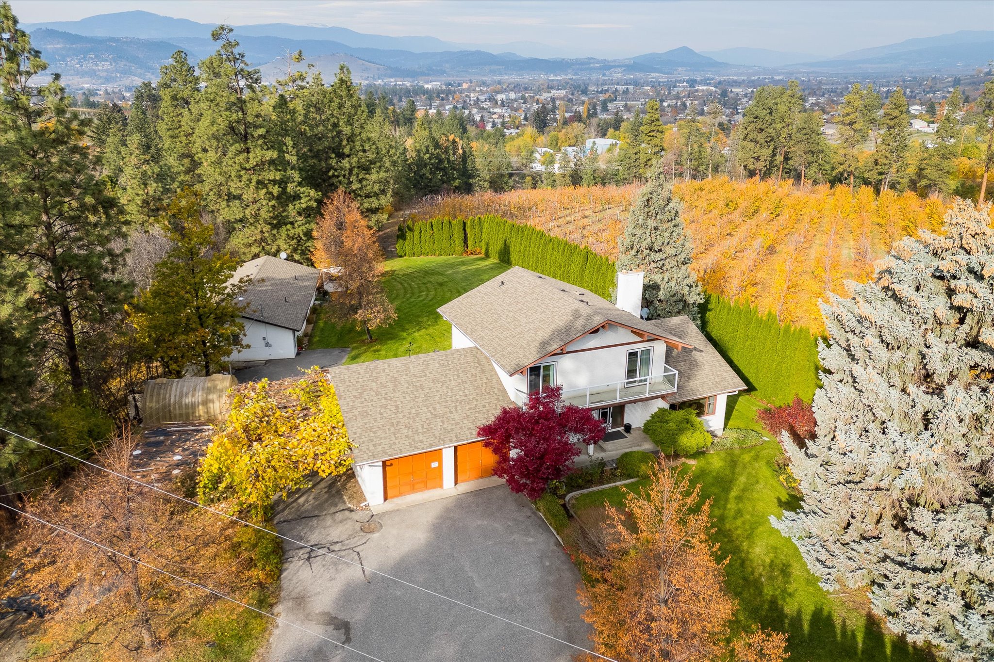 Immaculately kept home sitting on just under 1.5 acres in the Belgo-Black Mountain area, surrounded by scenic agricultural land and a private ravine. This property allows for comfortable living for large families as a secondary residence offers two 1 bed suites, while the main home offers a suitable 1 bed + den basement with walk out access. The main home offers 5 bedrooms and 4 bathrooms total across 3 floors, the large main floor features elegant formal living/dining rooms off the foyer and an open concept kitchen and family room. Enjoy the kitchen overlooking the large and cleared backyard, perfect for large family gatherings, with ample space to expand this kitchen into your dream. The sunroom offers large windows and high ceilings, perfect for your indoor garden to flourish. Convert one of the main level offices into your mud room/laundry area to round out this floorplan. Upstairs, a primary with ensuite and 3 more bedrooms are serviced by 1 bathroom. Expand the ensuite into the 4th bedroom and add a walk-in closet to totally transform this primary, with private balcony. Views of Black Mountain, on a quiet scenic road, close to Black Mountain Golf Course and only a 45 minute commute to Big White Ski Resort. Downtown Kelowna is just a quick 20 minute commute to Prospera Place where you are still close enough to all the local amenities and just out of the city to enjoy peace and quiet. Give us a call for your private tour.