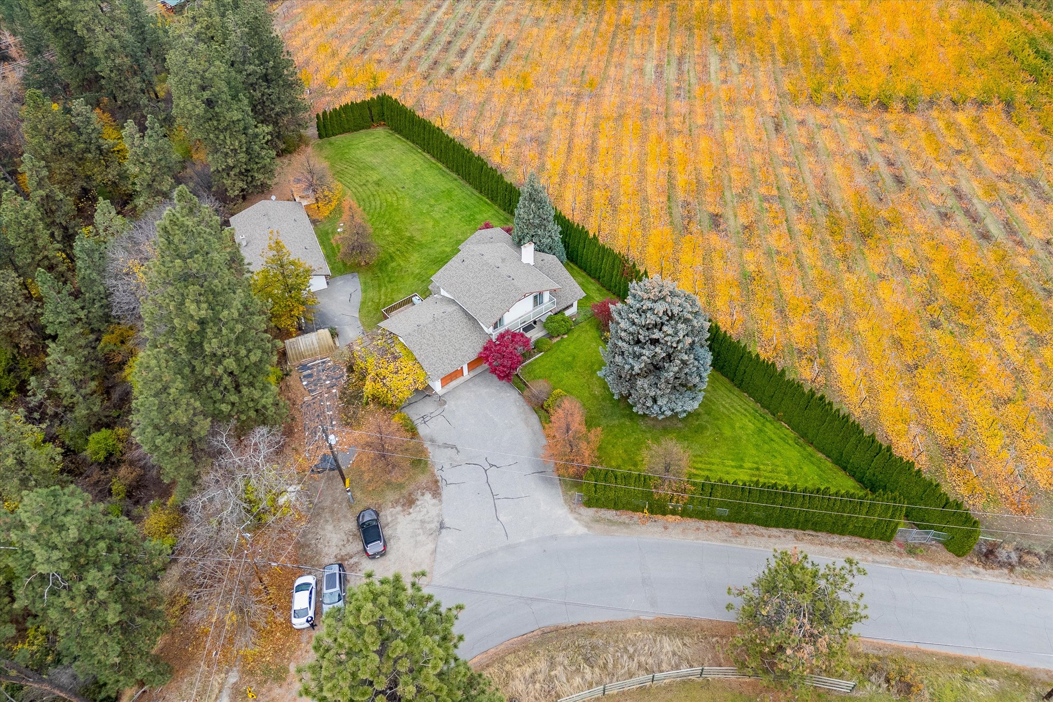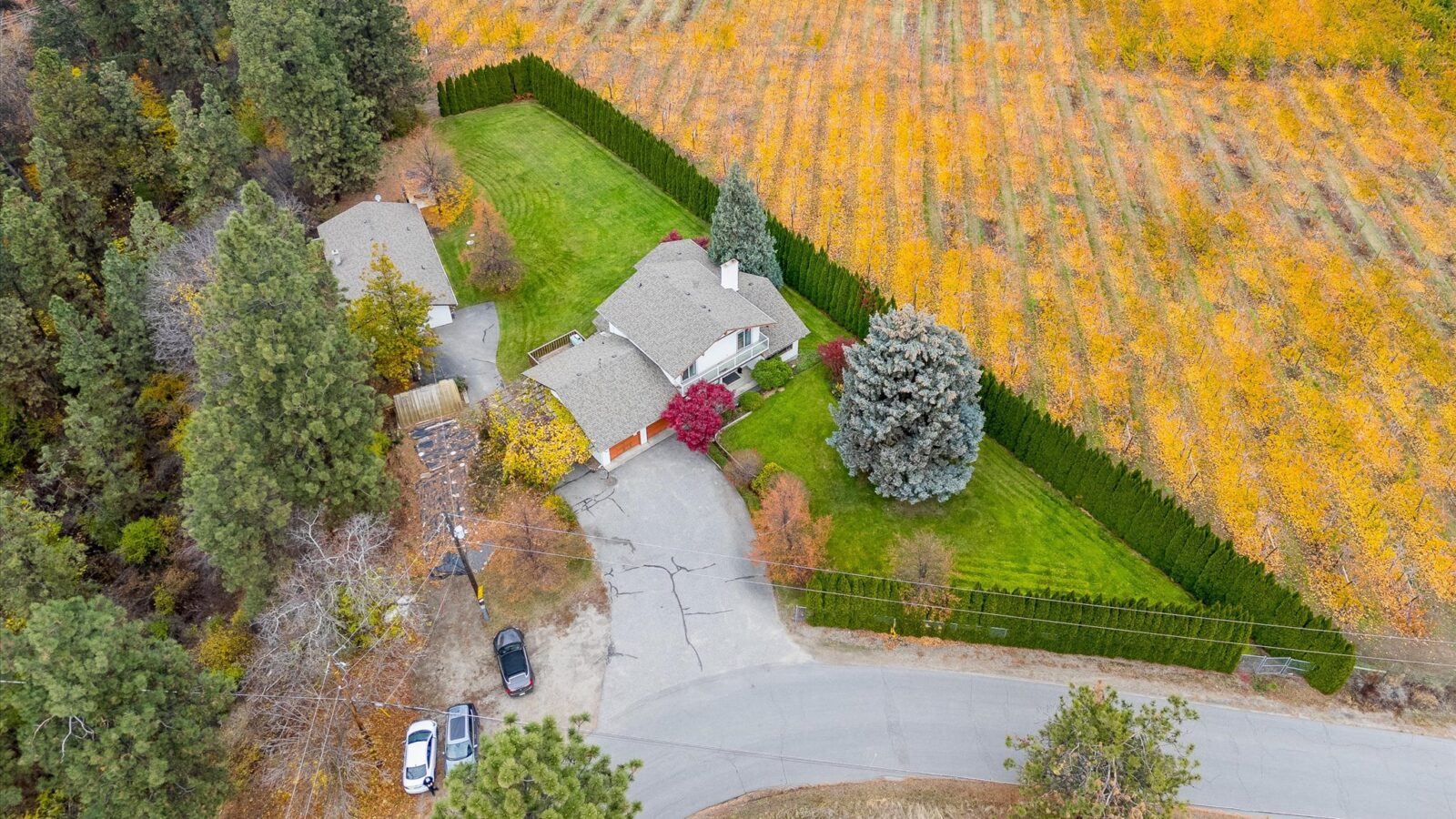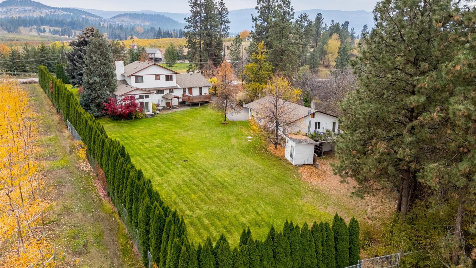 Immaculately kept home sitting on just under 1.5 acres in the Belgo-Black Mountain area, surrounded by scenic agricultural land and a private ravine. This property allows for comfortable living for large families as a secondary residence offers two 1 bed suites, while the main home offers a suitable 1 bed + den basement with walk out access. The main home offers 5 bedrooms and 4 bathrooms total across 3 floors, the large main floor features elegant formal living/dining rooms off the foyer and an open concept kitchen and family room. Enjoy the kitchen overlooking the large and cleared backyard, perfect for large family gatherings, with ample space to expand this kitchen into your dream. The sunroom offers large windows and high ceilings, perfect for your indoor garden to flourish. Convert one of the main level offices into your mud room/laundry area to round out this floorplan. Upstairs, a primary with ensuite and 3 more bedrooms are serviced by 1 bathroom. Expand the ensuite into the 4th bedroom and add a walk-in closet to totally transform this primary, with private balcony. Views of Black Mountain, on a quiet scenic road, close to Black Mountain Golf Course and only a 45 minute commute to Big White Ski Resort. Downtown Kelowna is just a quick 20 minute commute to Prospera Place where you are still close enough to all the local amenities and just out of the city to enjoy peace and quiet. Give us a call for your private tour.