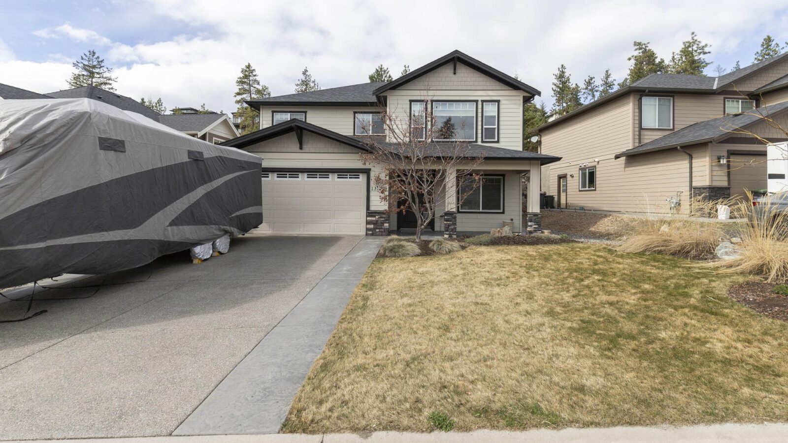 5-bed, 3-bath home, with over 2400 sq.ft. of living space, nestled within the highly sought-after “The Lakes” neighborhood in Lake Country. Built in 2014, this residence is tailored to accommodate the needs of modern family living. The main floor features a generously sized kitchen seamlessly flowing into the main living area, creating an inviting space for gatherings and everyday activities. With the primary bedroom and two additional bedrooms conveniently located on the same floor, this home offers practicality and ease of living. Outside, a sizable backyard with a covered patio invites you to enjoy the Okanagan weather. On the lower walkout level you’ll find two more bedrooms, a third full bathroom, a spacious rec room and a separate entrance that allows for added flexibility; the lower level can easily be converted into a 1-bed suite, providing potential for extra income. This family-friendly home boasts ample parking for boats and RV’s, low-maintenance yards with underground irrigation, and an unbeatable location close to parks and a sports court within “The Lakes” community. Residents benefit from seamless access to 6 acres of green space, parkland, and the scenic trails of Spion Kop, while enjoying the convenience of Lake Country amenities. With its practical layout, convenient features, and desirable location, this home presents a compelling opportunity for families seeking comfort and convenience in Lake Country.