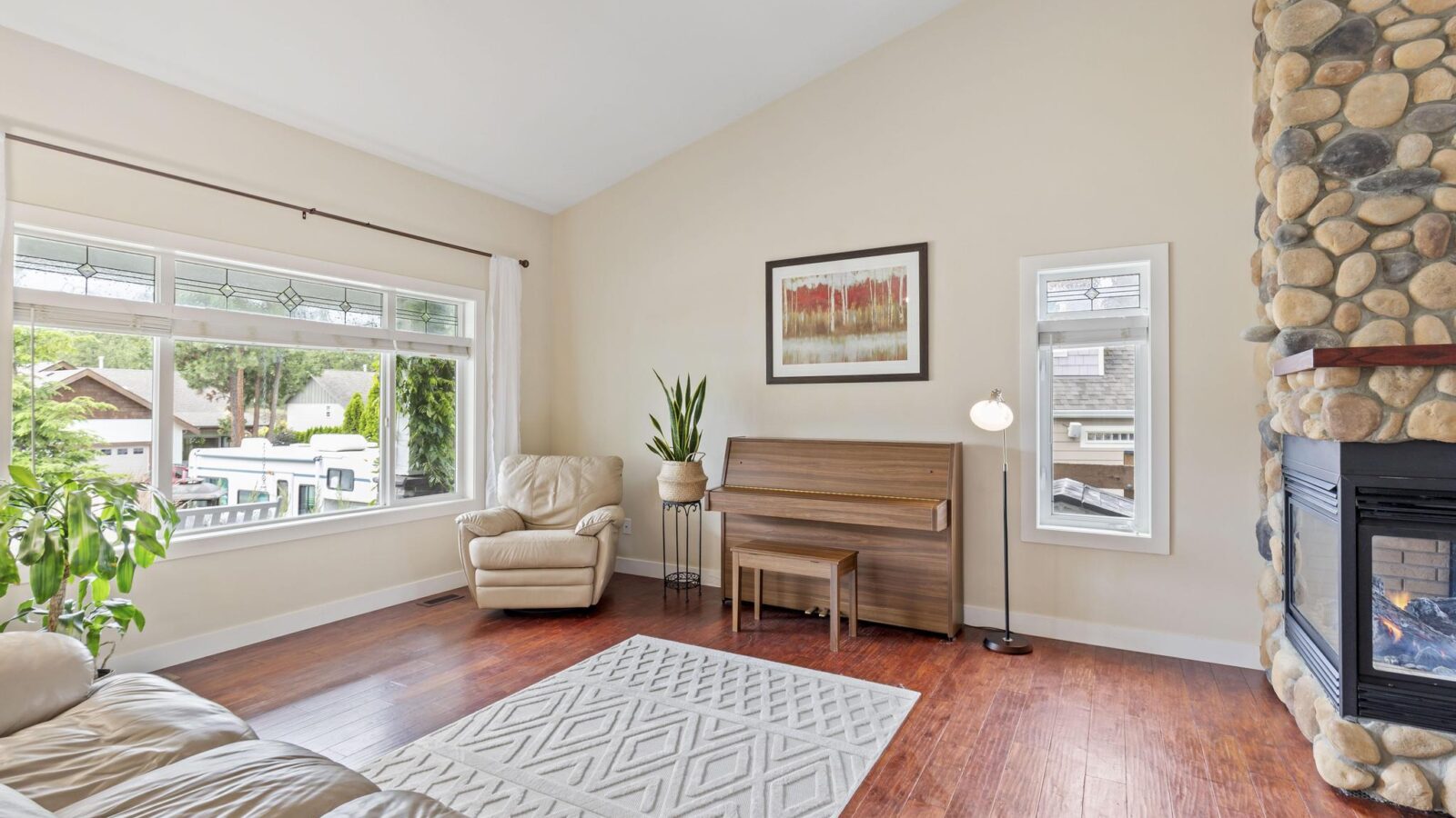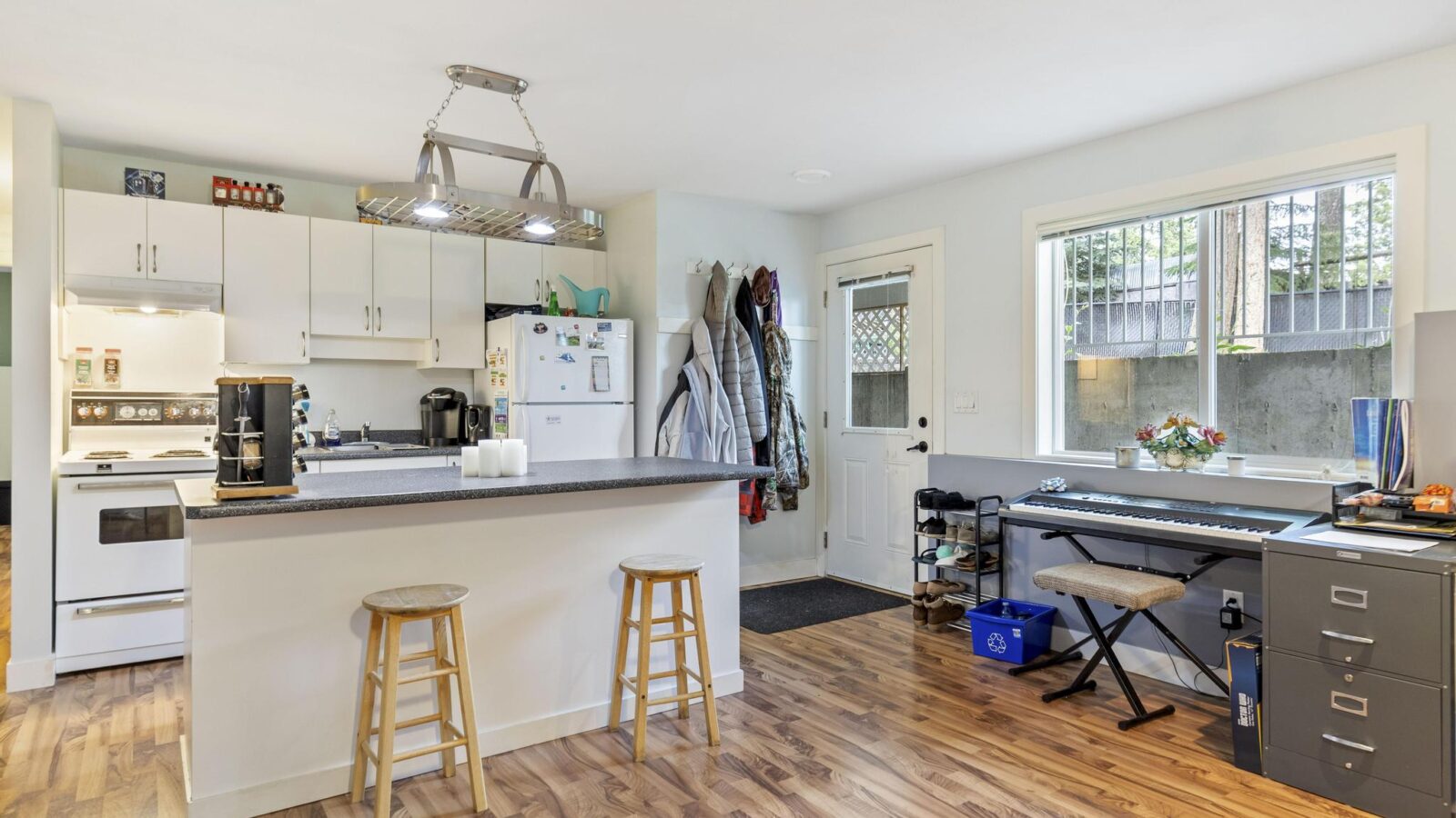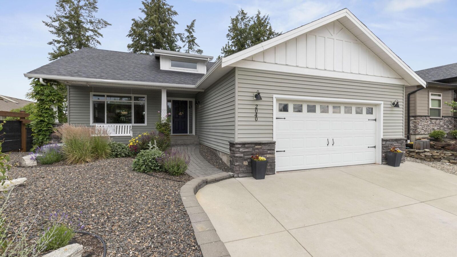 This beautiful 2,868 sq.ft. home, features 4 bedrooms and 4 bathrooms with a 685 sq.ft. 1-bedroom legal suite. It is within walking/biking distance to world-class wineries, both Wood and Okanagan Lake, and Davidson Road Elementary. Located in a vibrant, family-friendly, and safe neighborhood, this walkout rancher offers exceptional main-floor living. The front yard is beautifully designed with xeriscaping, enhancing the home’s curb appeal. Upon entering, you are welcomed by an inviting and warm living room featuring vaulted ceilings and a gas fireplace, creating a comfortable and cozy living space. The kitchen is equipped with stainless steel appliances, ample cabinet storage, and access to a large covered patio. by The master bedroom features a walk-in closet and private ensuite. Another full bathroom services the second upstairs bedroom. Downstairs includes a large rec room and an additional bedroom with a full bath. The 1-bedroom suite has its own private patio, perfect for extended family or rental income. The spacious backyard is enhanced with mature foliage for privacy, a gravel area for a trampoline, and a grassed area for kids and dogs. This move-in ready home is in one of the most desirable neighbourhoods in Lake Country, close to an excellent elementary school. Don’t miss this opportunity!