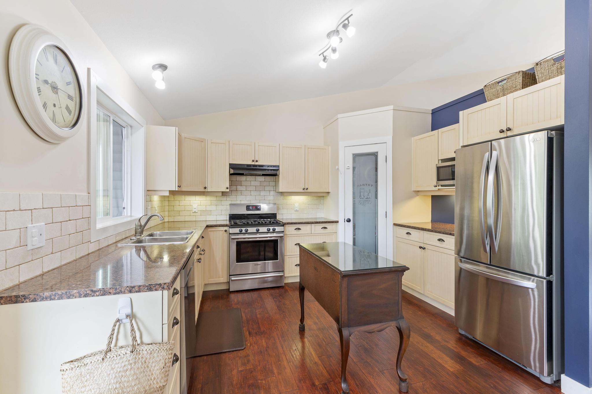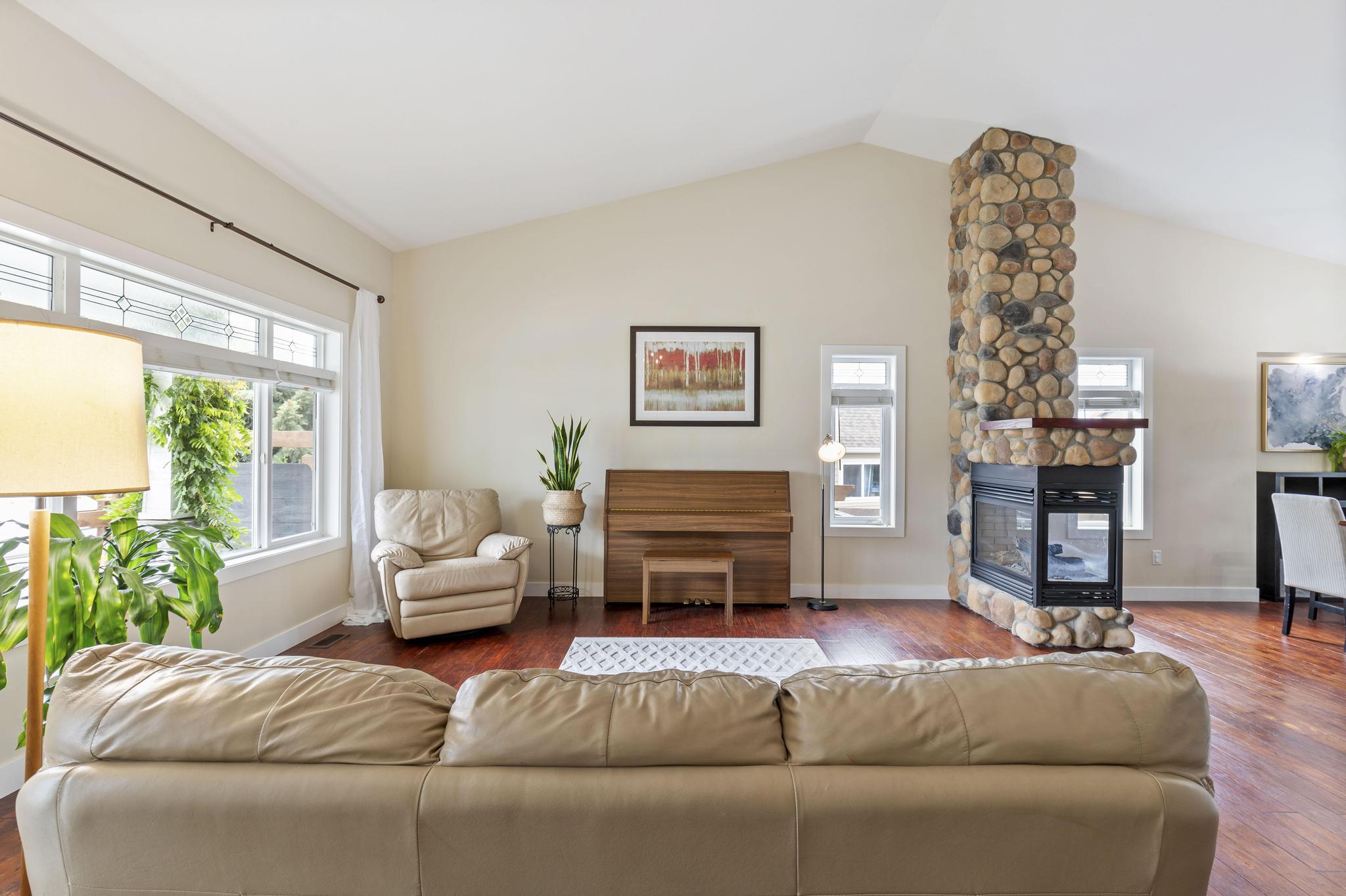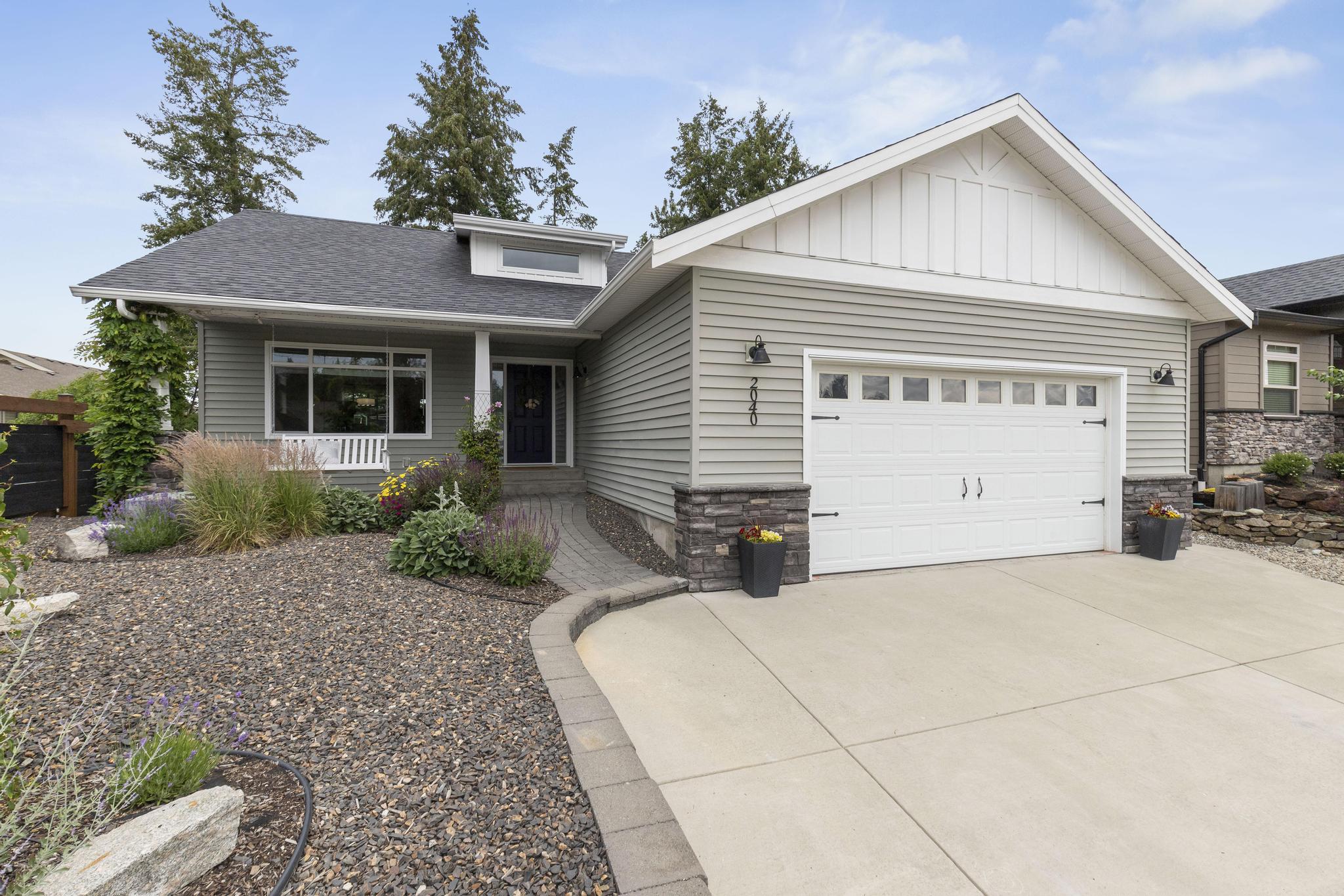 This beautiful 2,868 sq.ft. home, features 4 bedrooms and 4 bathrooms with a 685 sq.ft. 1-bedroom legal suite. It is within walking/biking distance to world-class wineries, both Wood and Okanagan Lake, and Davidson Road Elementary. Located in a vibrant, family-friendly, and safe neighborhood, this walkout rancher offers exceptional main-floor living. The front yard is beautifully designed with xeriscaping, enhancing the home’s curb appeal. Upon entering, you are welcomed by an inviting and warm living room featuring vaulted ceilings and a gas fireplace, creating a comfortable and cozy living space. The kitchen is equipped with stainless steel appliances, ample cabinet storage, and access to a large covered patio. by The master bedroom features a walk-in closet and private ensuite. Another full bathroom services the second upstairs bedroom. Downstairs includes a large rec room and an additional bedroom with a full bath. The 1-bedroom suite has its own private patio, perfect for extended family or rental income. The spacious backyard is enhanced with mature foliage for privacy, a gravel area for a trampoline, and a grassed area for kids and dogs. This move-in ready home is in one of the most desirable neighbourhoods in Lake Country, close to an excellent elementary school. Don’t miss this opportunity!