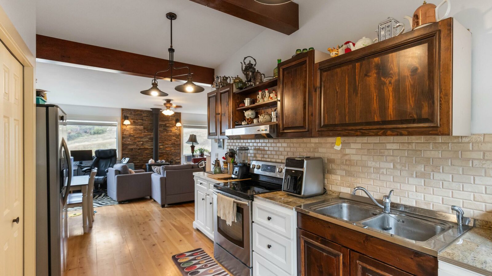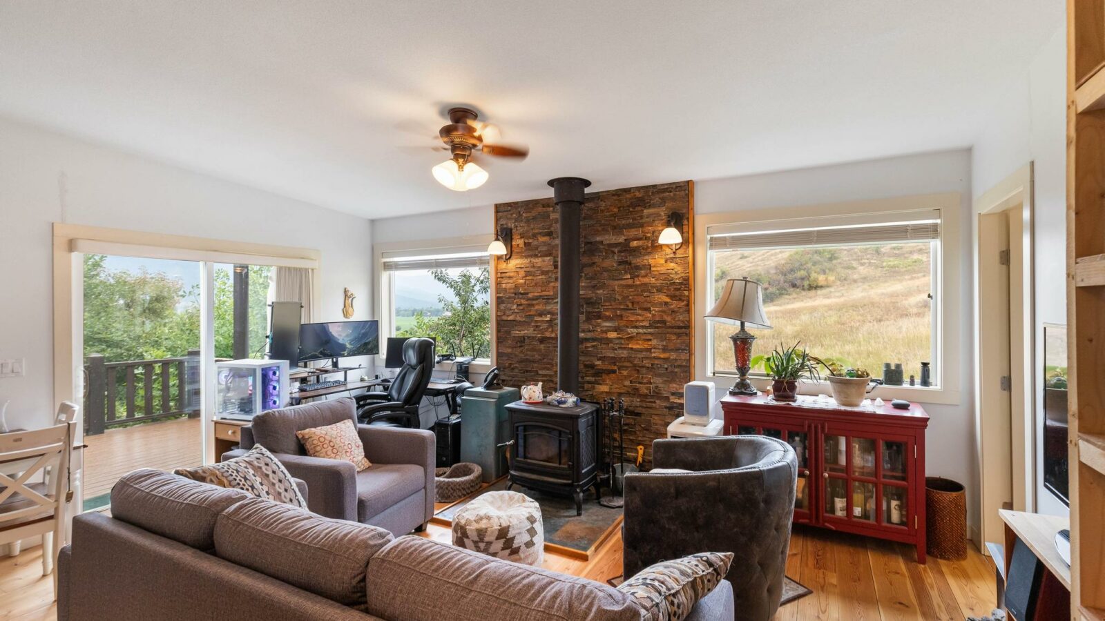 91+ acre parcel in the Lumby area! This property offers a main home with 7 bedrooms + den and 4 bathrooms across 4000+ sq.ft., a detached guest home, garages, and consistent slope on the grasslands. The main home itself would be great for a large family, with 7 bedrooms offering lots of layout flexibility for different family setups. Stunning woodwork, over height ceilings, enormous wraparound deck, brick fireplace, in-law suite area, and a large kitchen with granite countertops are all great features of the main residence. The guest home has 1 bedroom, making it great for family, guests, or revenue. There is a large detached gym with rubber flooring and in-ceiling bluetooth speakers. Fibre optic installation makes for quick internet in this rural setting. The land is over 90 acres in size, and there is a well on the property for domestic use. Different animals would thrive on the land given the size, and there is a chicken coop currently in place. Southern exposure means lots of sunshine for the home, and there are great views to accompany. The downstairs was previously a retirement home. If an investor wanted to invest in 90+ acres of highway frontage land with multiple different revenue streams, this could be a great option to park
