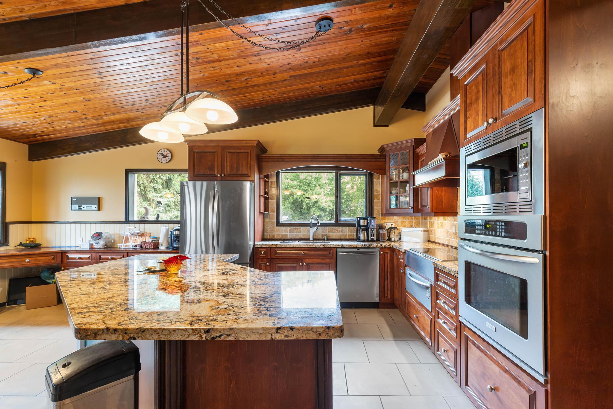 91+ acre parcel in the Lumby area! This property offers a main home with 7 bedrooms + den and 4 bathrooms across 4000+ sq.ft., a detached guest home, garages, and consistent slope on the grasslands. The main home itself would be great for a large family, with 7 bedrooms offering lots of layout flexibility for different family setups. Stunning woodwork, over height ceilings, enormous wraparound deck, brick fireplace, in-law suite area, and a large kitchen with granite countertops are all great features of the main residence. The guest home has 1 bedroom, making it great for family, guests, or revenue. There is a large detached gym with rubber flooring and in-ceiling bluetooth speakers. Fibre optic installation makes for quick internet in this rural setting. The land is over 90 acres in size, and there is a well on the property for domestic use. Different animals would thrive on the land given the size, and there is a chicken coop currently in place. Southern exposure means lots of sunshine for the home, and there are great views to accompany. The downstairs was previously a retirement home. If an investor wanted to invest in 90+ acres of highway frontage land with multiple different revenue streams, this could be a great option to park