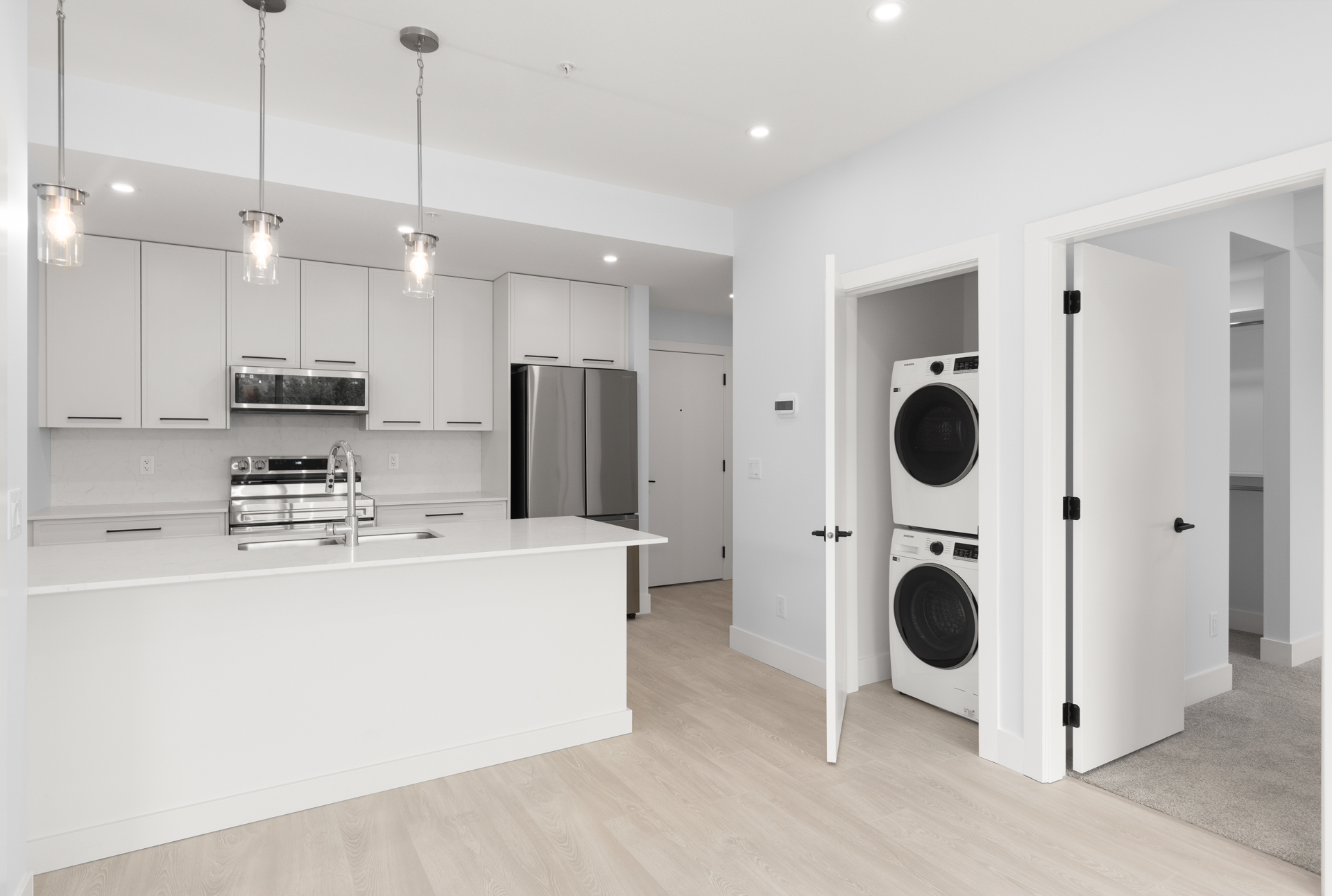 Welcome to The Rydell, located in the Capri area of Kelowna. These brand-new condos, never before lived in, offer top-of-the-line finishings such as quartz countertops, stainless steel appliances, 9′ ceilings, in-suite laundry, and more! This 2 bedroom, 2 bathroom CORNER unit offers a 77 square foot deck and additional privacy. The complex offers secure parking, bicycle storage, e-bike charging, and a bike wash area. The Rydell is all about location, offering the perfect centralized proximity to the Landmark District, the beach, downtown, and the North End Brewery District, all within a 10-minute bike ride… or simply walk to the Capri mall for all your groceries, post office, etc! Redevelopment plans for the Capri area will continue to create long-term value, making this a great investment property as well with high rents achieved in the area. Sutherland Ave and Ethel Street offer protected, dedicated bike lanes to ensure safe and convenient traveling. Pets: 2 dogs, 2 cats, or one of each (each under 25 lbs). If you have only one dog, there are no size restrictions! New 2/5/10 year home warranty.
