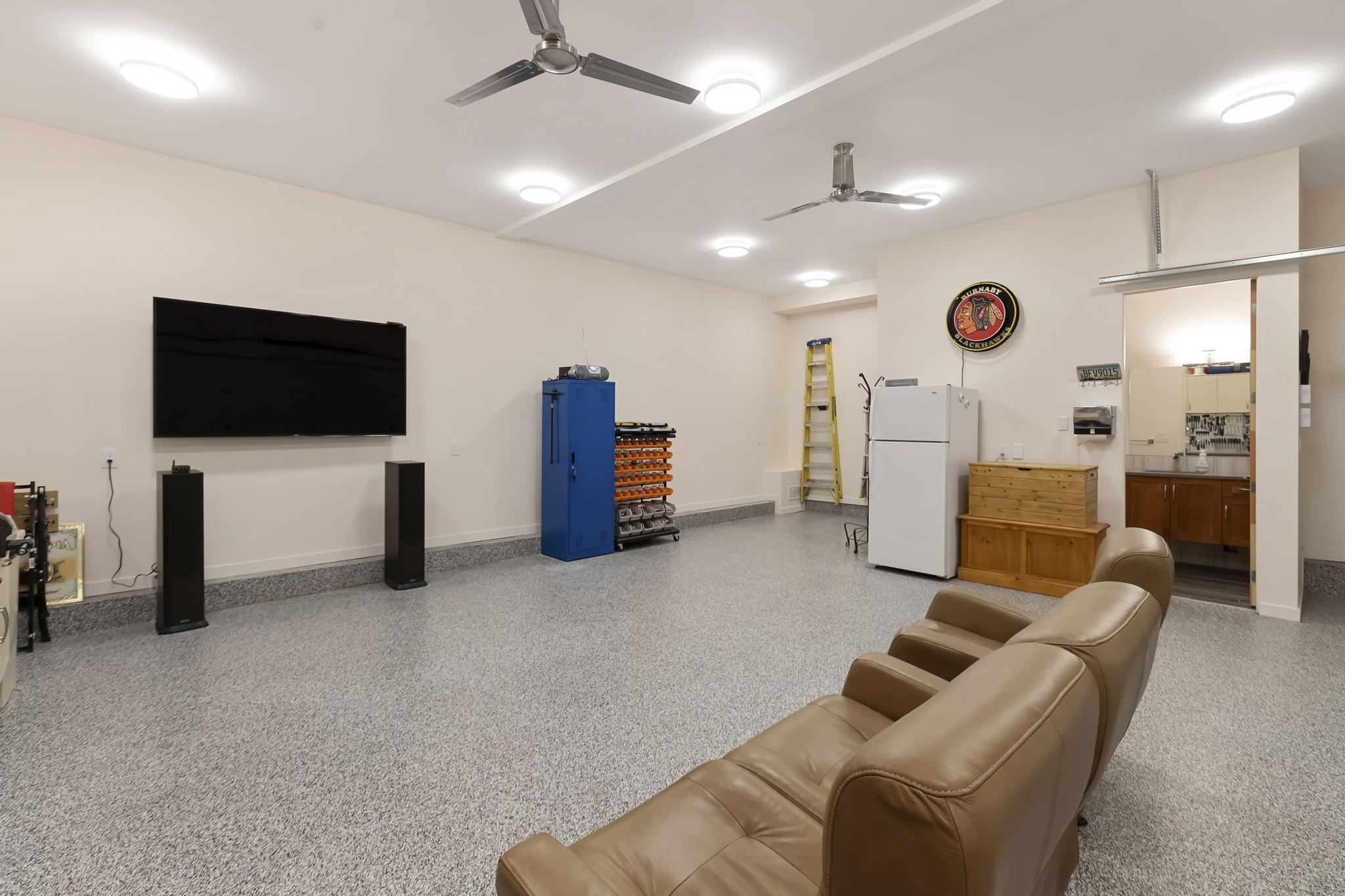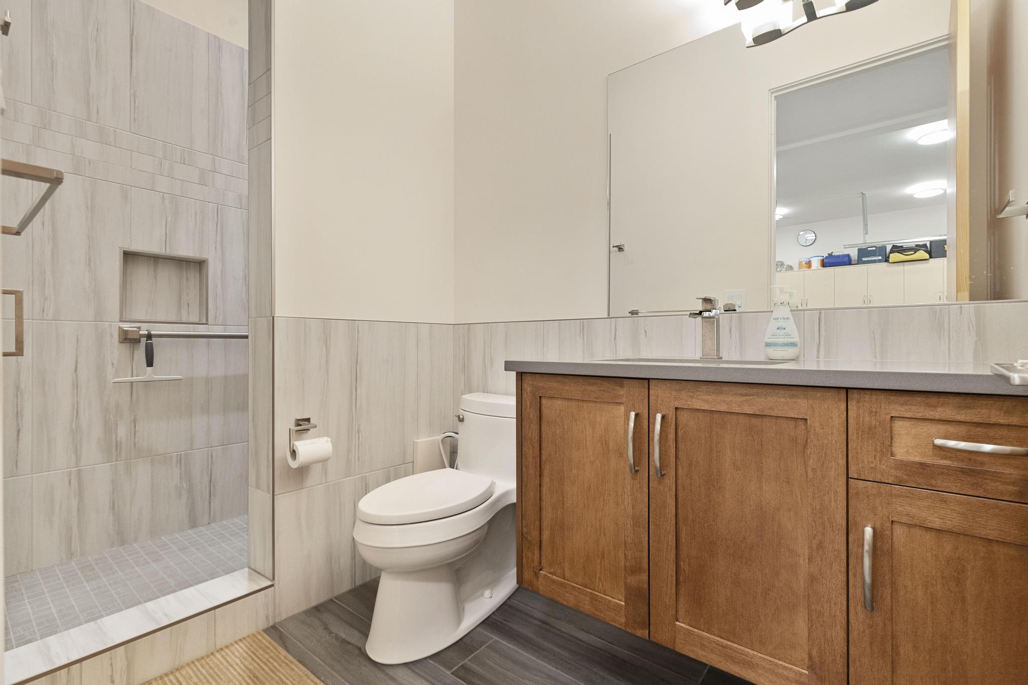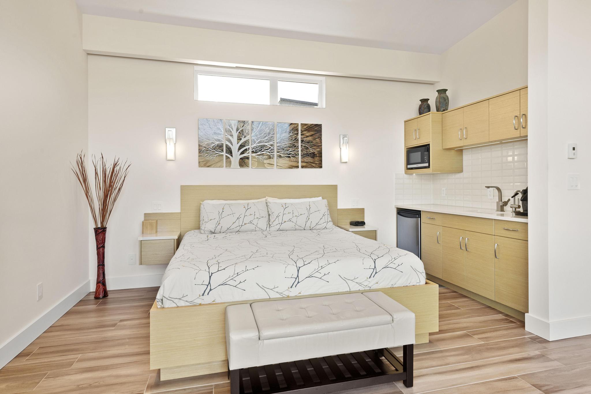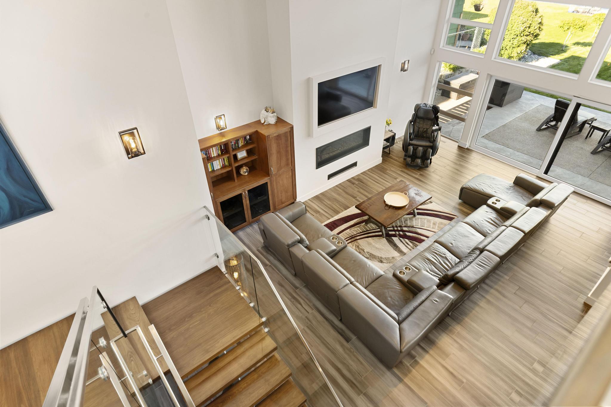 With over 5,200 square feet of living space, including a 4,300-square-foot main residence with three bedrooms and four bathrooms, plus a 952-square-foot family wing, this is sizeable lakeshore residence. Seamlessly blending indoor and outdoor living, enjoy 1,510 square feet of spacious deck space. With over 1,900 square feet of garage space and room for 5+ cars, plus boat/RV parking, rare lakeshore parking is offered. Modern conveniences like an elevator, radiant heating, wine closet, and porcelain plank floors elevate luxury living. The chef’s kitchen transitions to an outdoor kitchen/lounge area, ideal for entertainment space. The private master suite boasts a large walk-in closet and ensuite with a steam shower.