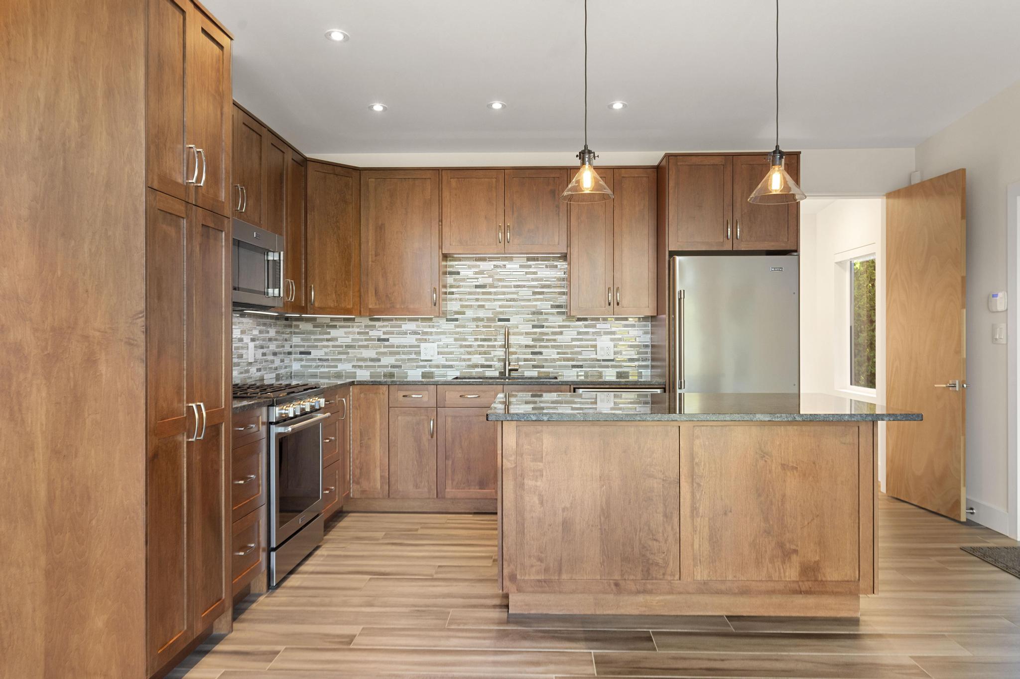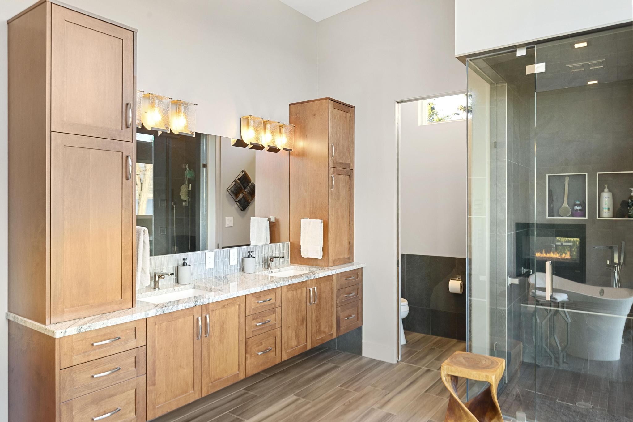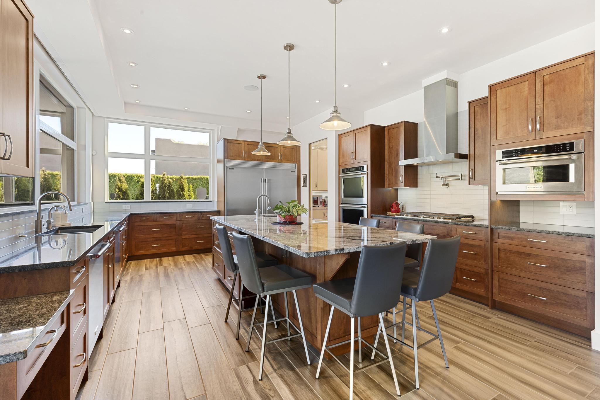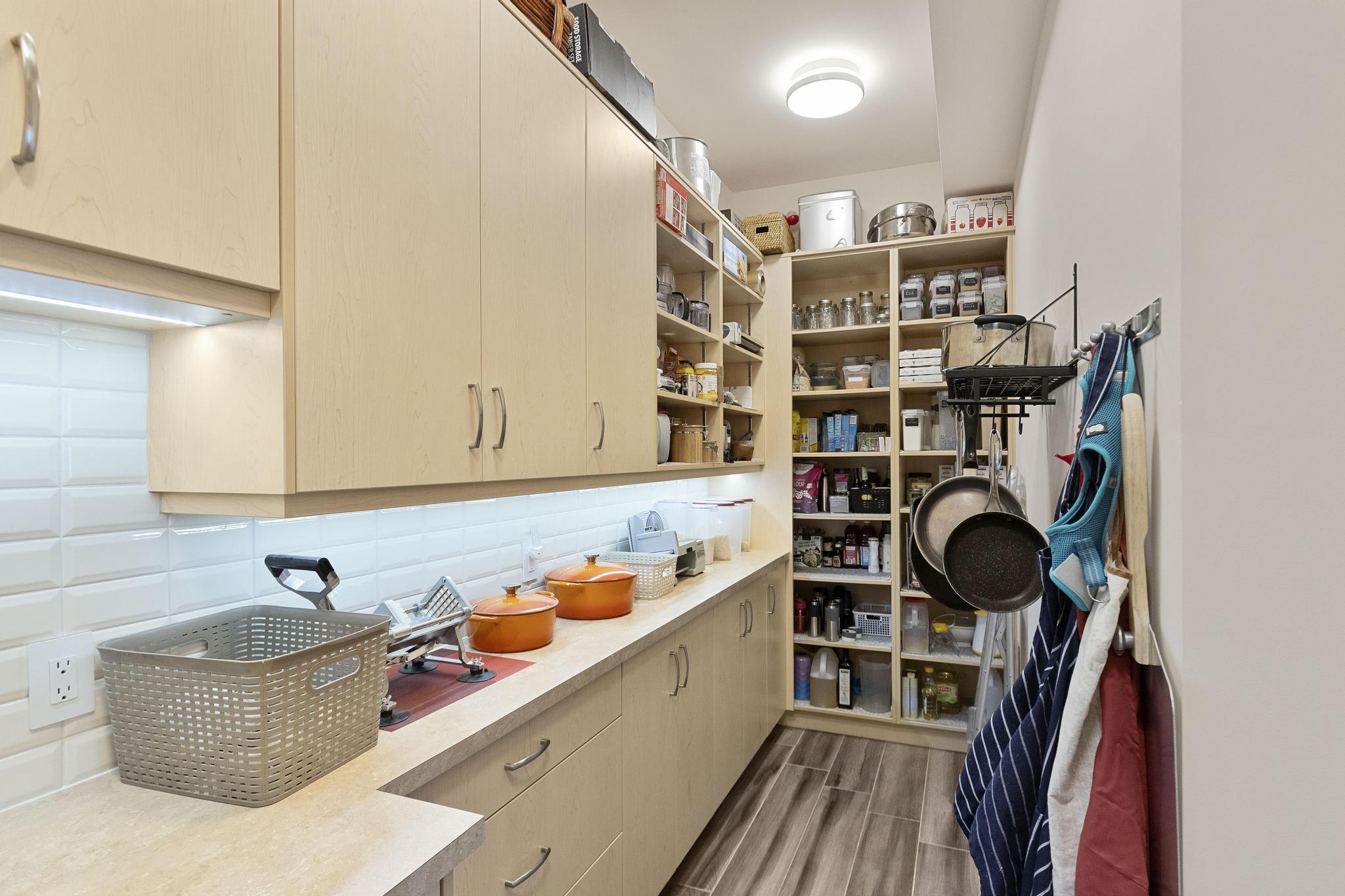 With over 5,200 square feet of living space, including a 4,300-square-foot main residence with three bedrooms and four bathrooms, plus a 952-square-foot family wing, this is sizeable lakeshore residence. Seamlessly blending indoor and outdoor living, enjoy 1,510 square feet of spacious deck space. With over 1,900 square feet of garage space and room for 5+ cars, plus boat/RV parking, rare lakeshore parking is offered. Modern conveniences like an elevator, radiant heating, wine closet, and porcelain plank floors elevate luxury living. The chef’s kitchen transitions to an outdoor kitchen/lounge area, ideal for entertainment space. The private master suite boasts a large walk-in closet and ensuite with a steam shower.